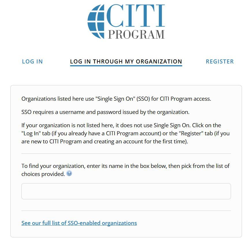 If this is your first time logging into CITI, you will be asked to log-in through your organization. Choose California Institute of Technology and follow the log-in prompts.